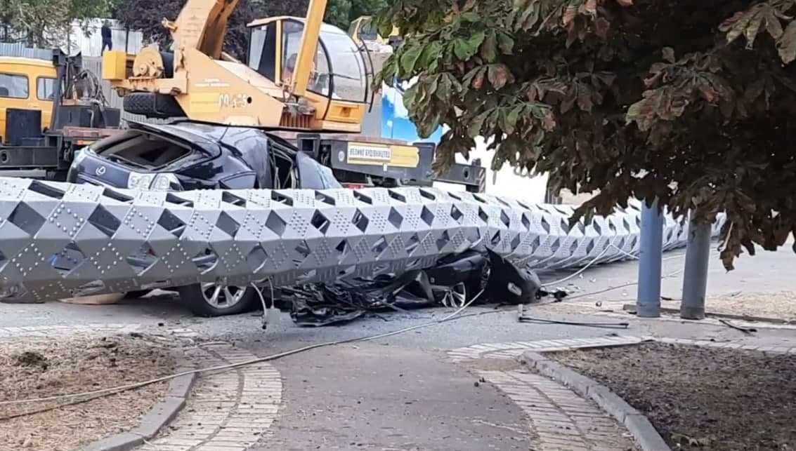 Установка самого высокого флагштока в Херсоне окончена: конструкция рухнула и расплющила припаркованный неподалёку «Лексус».