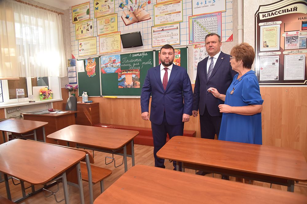 В понедельник, 30 августа, Глава Донецкой Народной Республики Денис Пушилин посетил МОУ «Специализированная школа с углубленным изучением гуманитарных дисциплин № 18 города Донецка».