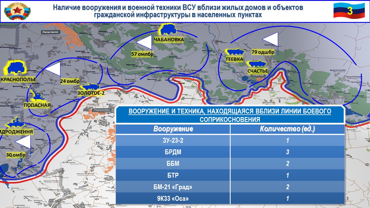 Наша разведка выявила десять единиц вооружения и военной техники ВСУ, размещенные вдоль линии боевого соприкосновения в нарушение третьего пункта комплекса дополнительных мер по поддержанию перемирия.