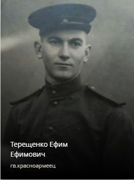И у моих внуков воевал дедушка их мамы Марины, супруги моего сына Артёма — Ефим Ефимович Терещенко (13.01.1926 г. р.), уроженец Каменки-Днепровской Запорожской области.