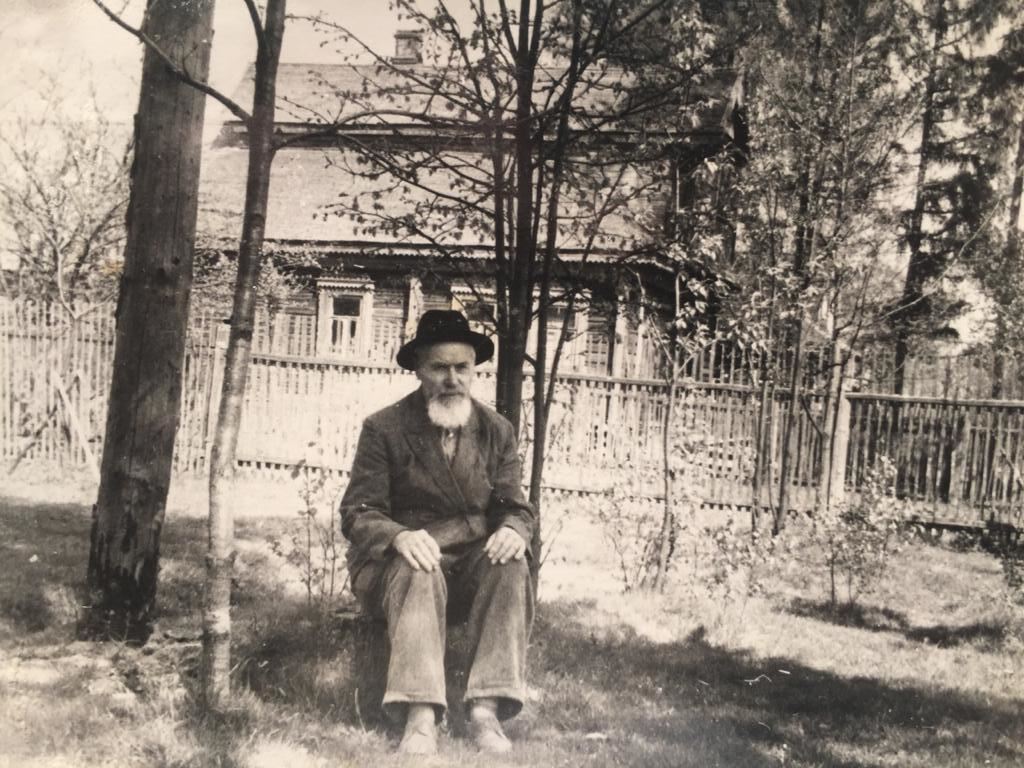 Отец Анатолия Ивановича — Иван Арсентьевич Пожаров у отцовского бревенчатого дома с большой светёлкой, построенного ещё Арсением Спиридоновичем Пожаровым