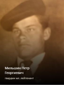 Пятый из сыновей, младший — Пётр Егорович Мильшин, Георгиевич по официальным документам (1924 — убит 22.11.1943). Младший лейтенант Пётр Егорович Мильшин воевал в составе 40 корпусного артиллерийского полка (КАП) с конца августа 1942 года командиром взвода управления артполка.
