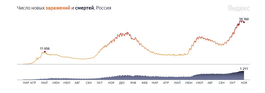 За сутки в России скончались 1 211 пациентов с COVID-19 — это новый антирекорд за всё время с начала эпидемии в нашей стране.