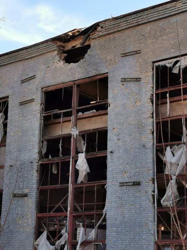По его словам, разрушена кровля цеха, фасад, разбиты все окна. Кроме того, как видно на фото, повреждено производственное оборудование.