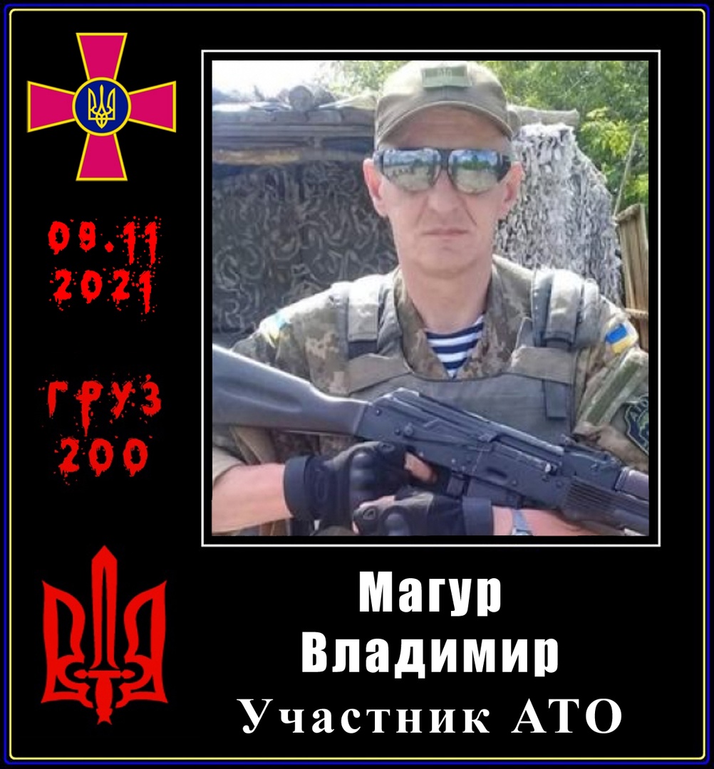 ► 09.11.2021 — Магур Владимир, 1972 г. р., участник «АТО». Свою расплату за жизни невинно убиенных мирных жителей Донбасса получил в виде внезапной смерти. На родине «героя и защитника незалежной» в г. Бориславе Дрогобычского района Львовской области остались жена и дети.