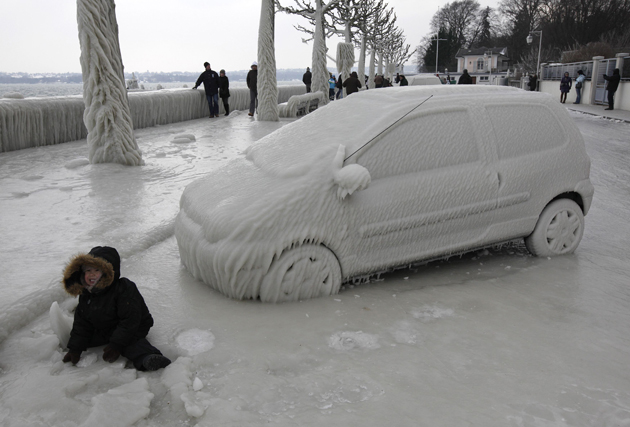 Судно с иномарками, установленными на открытой палубе, по пути в Россию попало в шторм. В условиях отрицательных температур машины покрылись толстой ледяной коркой и теперь больше похожи на ледяные скульптуры, а не на средства передвижения.