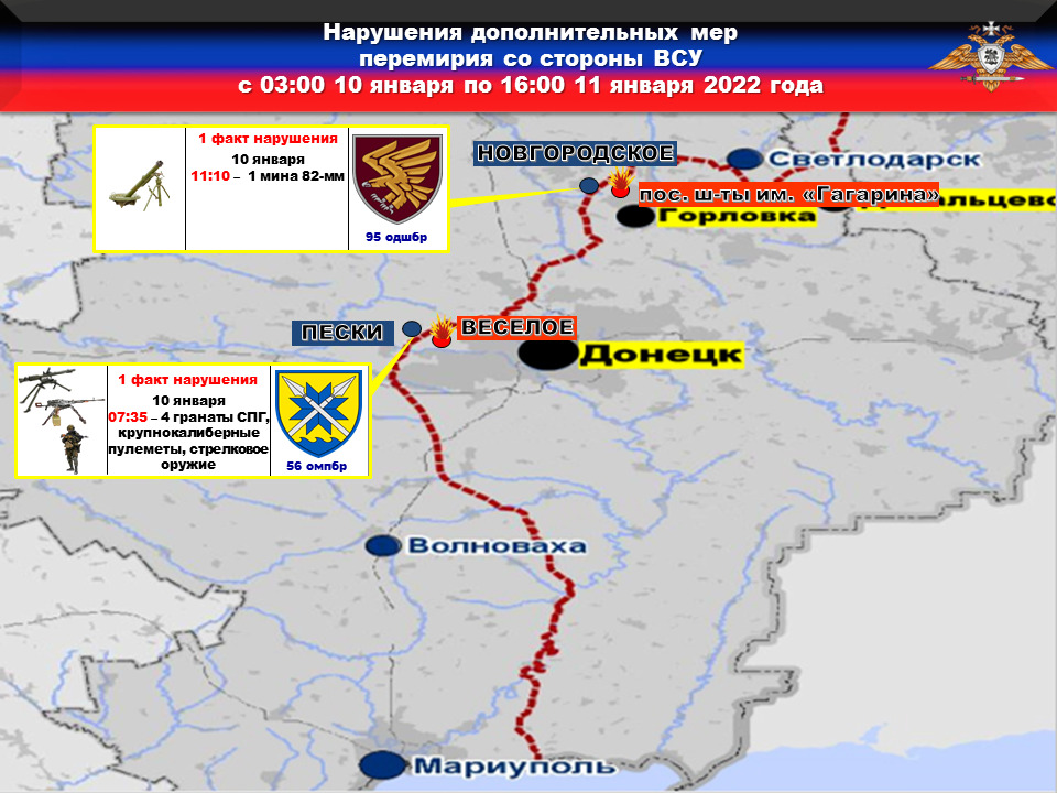 За прошедшие сутки со стороны украинских боевиков зафиксировано два нарушения Комплекса дополнительных мер по контролю за соблюдением режима прекращения огня.