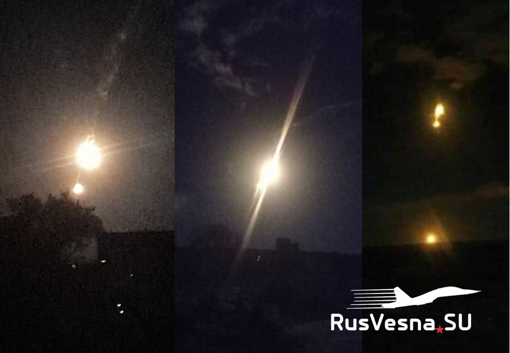 Некоторые не поняли, что происходит, и утверждают, что российские военные нанесли ракетный удар, другие же ближе к истине пишут об осветительных боеприпасах, которые запускают в качестве тренировки.