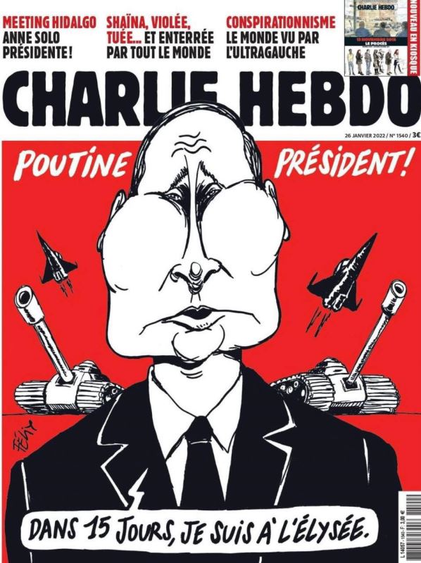 Французская газета с карикатурами Charlie Hebdo шутя прочит, что Путин «через две недели будет хозяином резиденции президента Франции».
