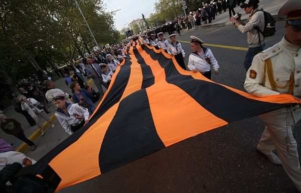 Zа наших — монумент «Героям битвы под Москвой» облачили в гигантскую георгиевскую ленту.
