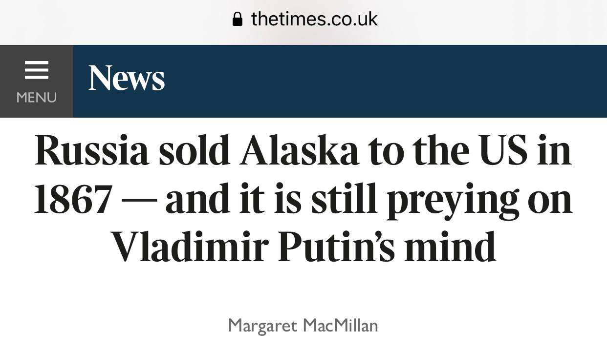 Британское издание The Sunday Times сообщает, что после Украины Владимир Путин собирается вернуть России Аляску.