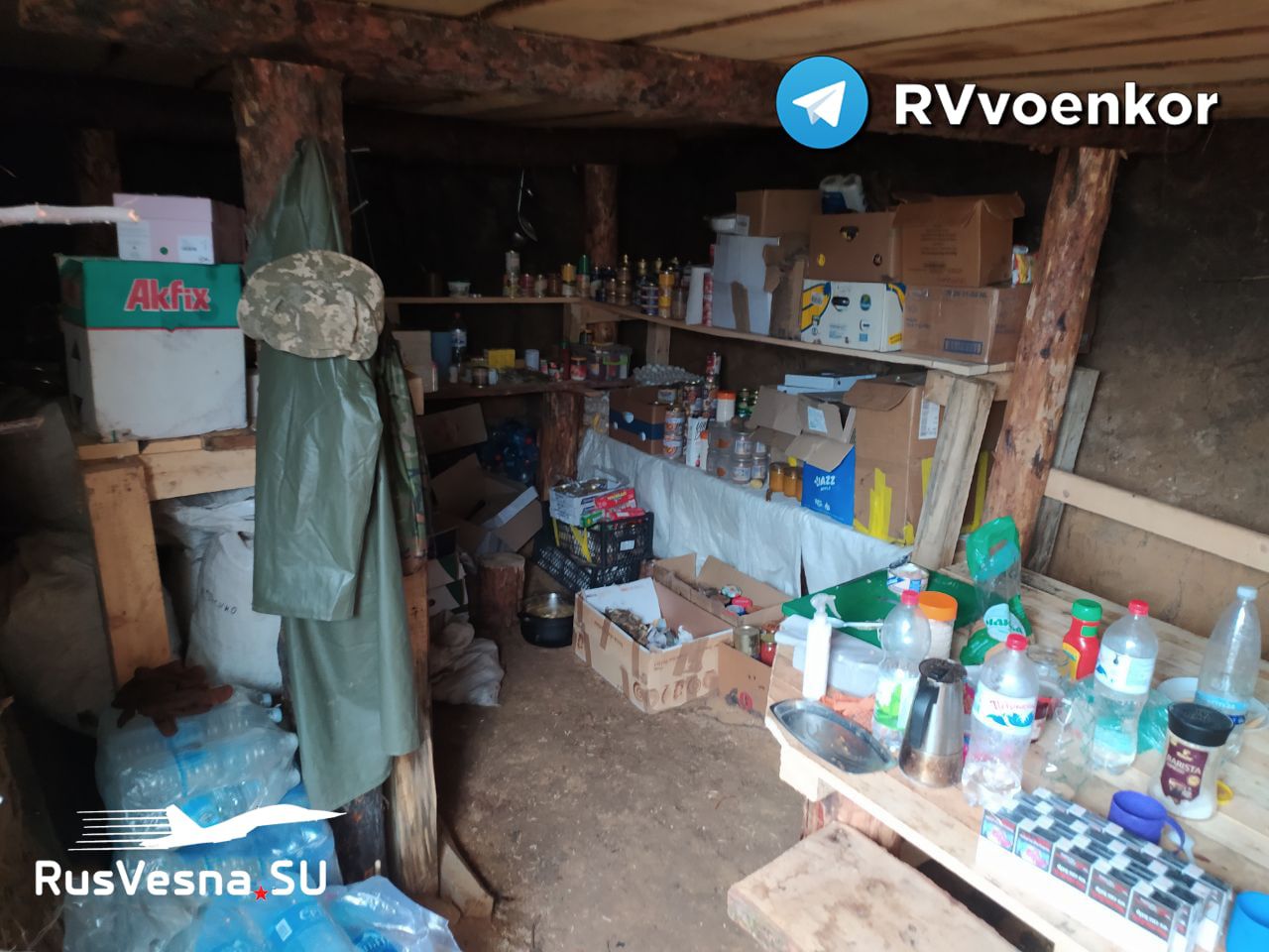 Окопы, блиндажи, ящики с боеприпасами, склады продуктов и даже целый внедорожник.