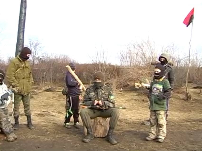 Но сами украинские мальчишки думают, что играют не то в «Зарницу», не то в казаков-разбойников — ведь какому ребенку в их возрасте не хочется устроить землянку или шалаш?