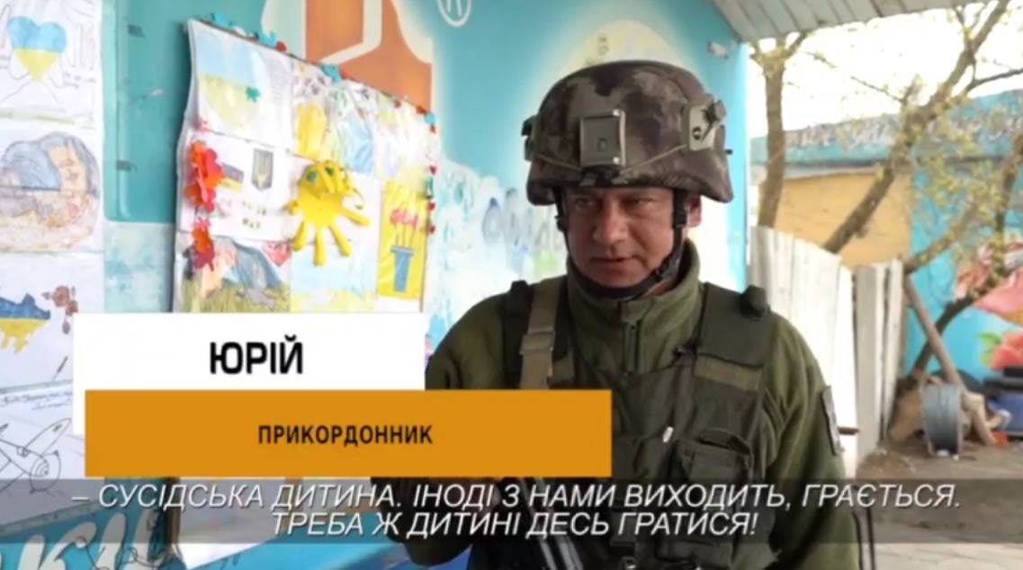 «Это соседский ребенок. Иногда с нами выходит, играется», — невозмутимо вещает Юрий, сотрудник Государственной пограничной службы Украины.