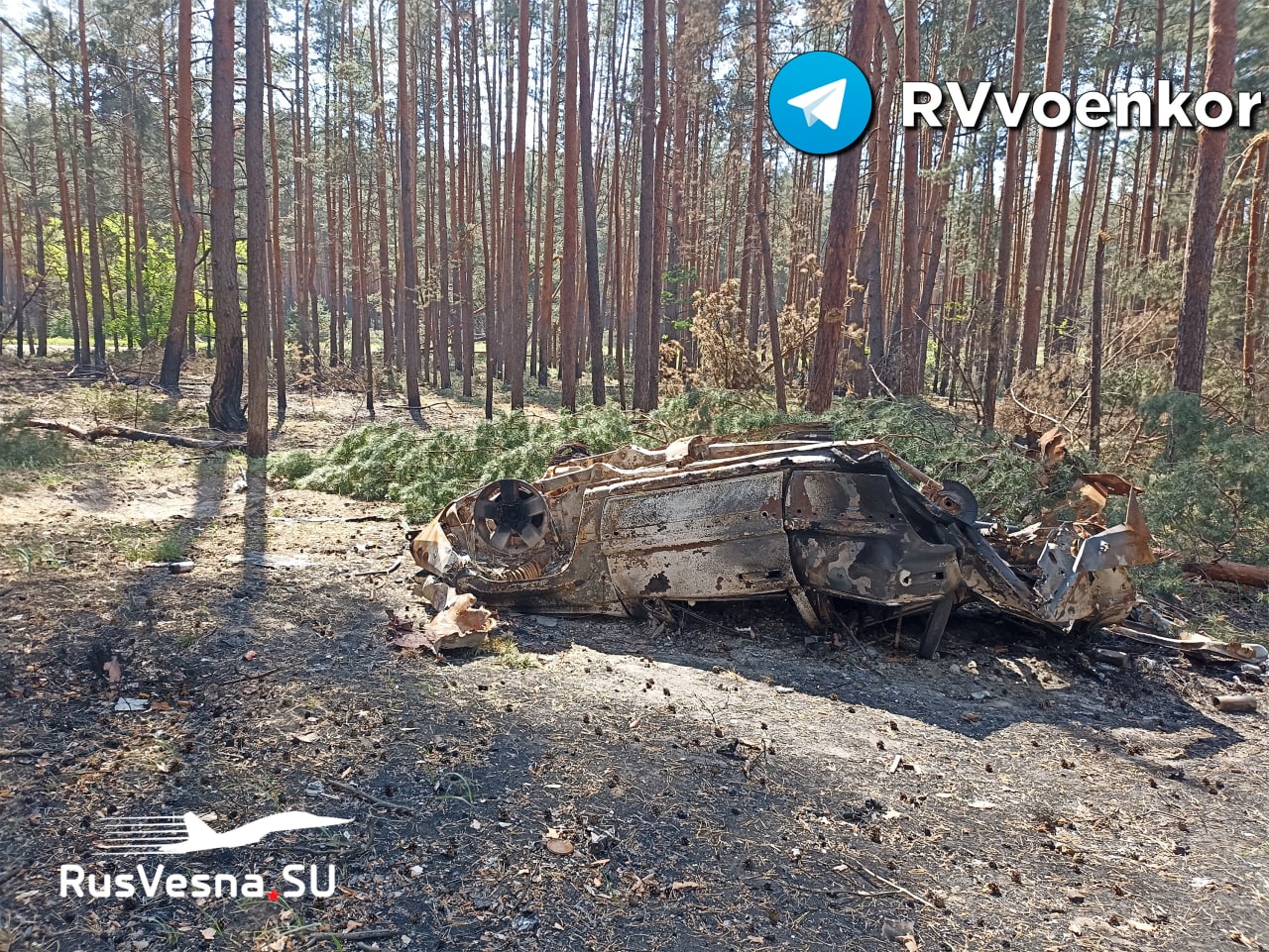 На этих кадрах можно увидеть уничтоженный автомобиль, обгоревшие тела наёмников, а также шеврон с флагом США. Позывной одного из уничтоженных боевиков – Джокер.