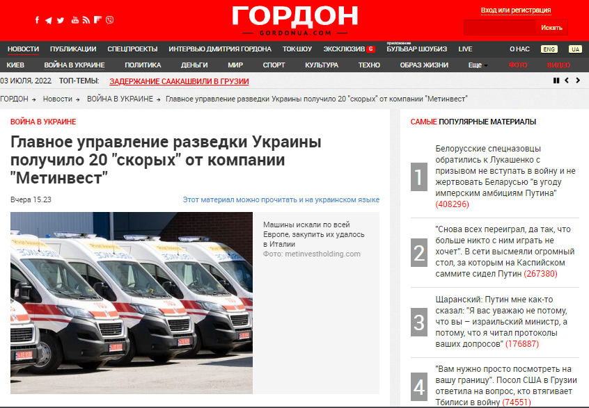 Главное управление разведки киевского режима получило от фонда Рината Ахметова автомобили скорой помощи.