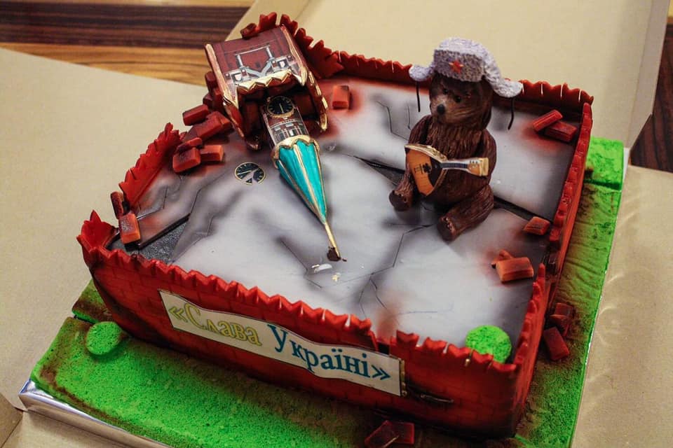 Технология пищевой печати — нанесение любого текста или изображения на съедобную бумагу съедобными красителями — обычно используется в изготовлении тортов для детей, когда изделие украшают картинками с героями мультфильмов, компьютерных игр или литературных персонажей, но украинские некрофилы всё, до чего могут дотянуться, оскверняют.