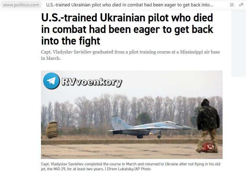 Украинский лётчик, два года учившийся на «суперкурсах» в США, уничтожен русскими в одном из первых вылетов на Украине, пишет американское издание Politico.