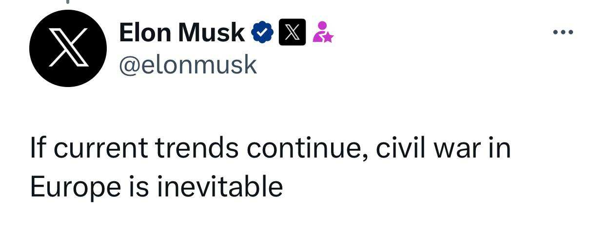 Гражданская война в Европе неизбежна, — Илон Маск