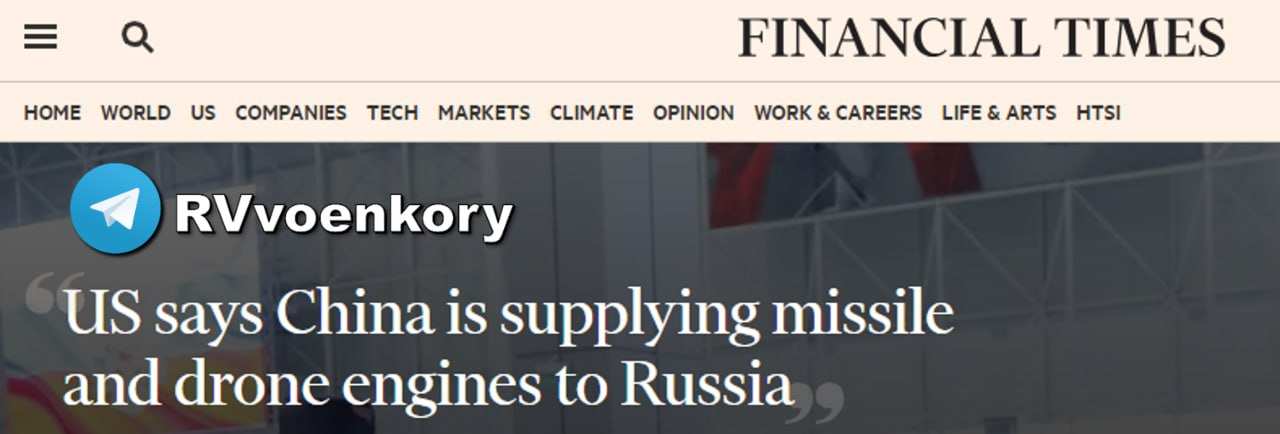 Китай поставляет России двигатели для крылатых ракет и БПЛА, пишет издание The Financial Times cо ссылкой на американскую разведку.