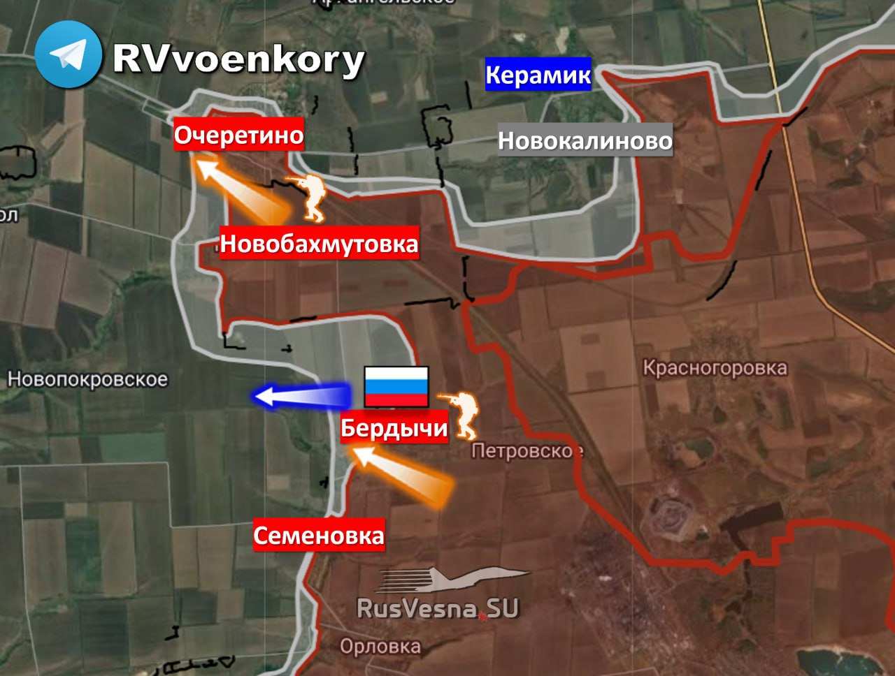 ВСУ бегут из Бердычей под натиском «Отважных», посёлок под контролем армии России (КАРТА)