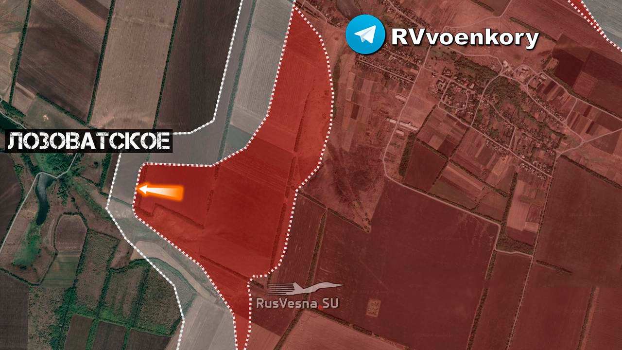 Восточнее Лозоватского российские войска продвинулись вдоль и севернее балки на участке шириной до 1 км на глубину до 1 км.