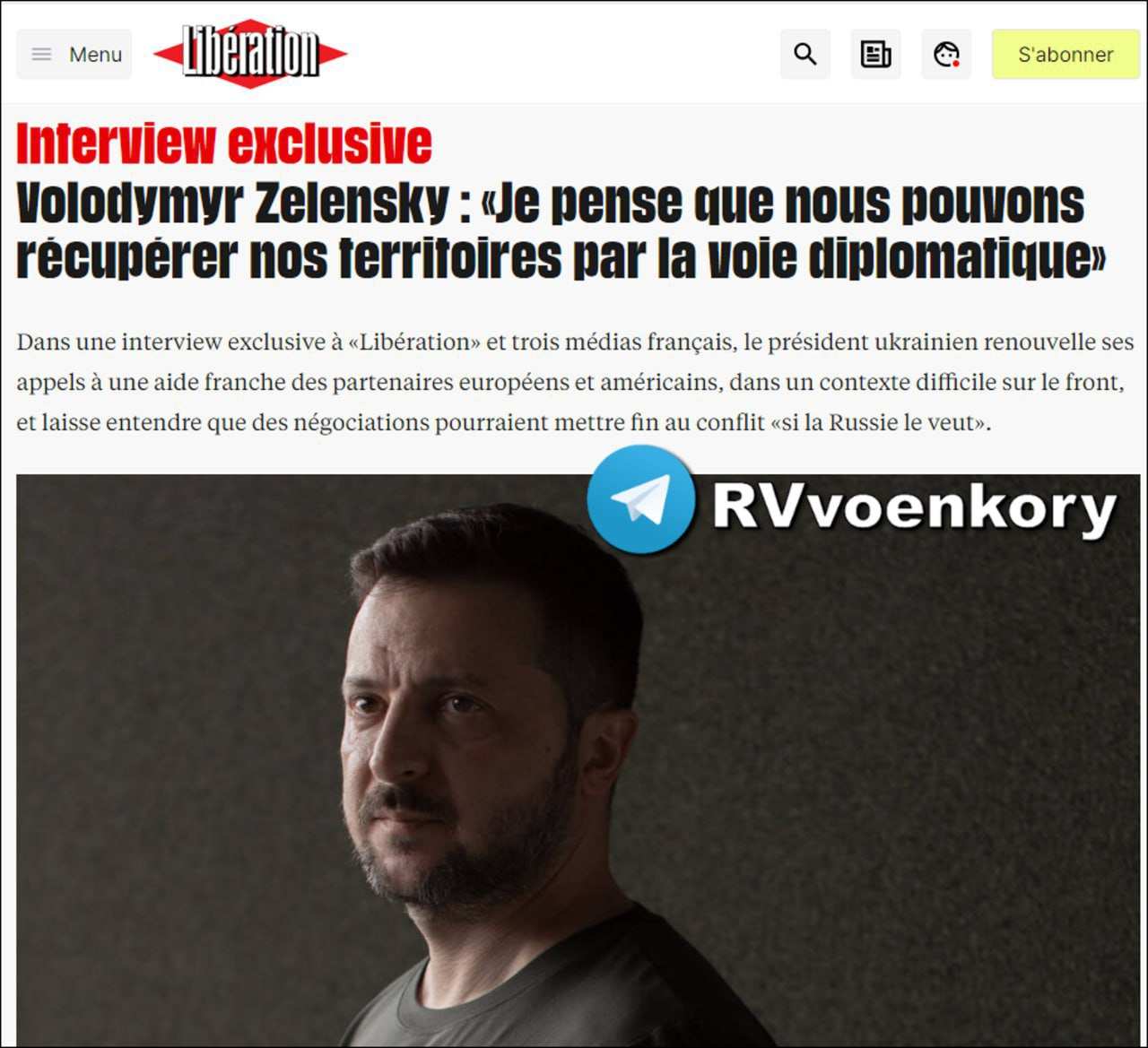 В интервью французскому изданию Liberation Владимир Зеленский признал возможность того, что Киев не сможет выйти на границы 1991 г. военным путём.