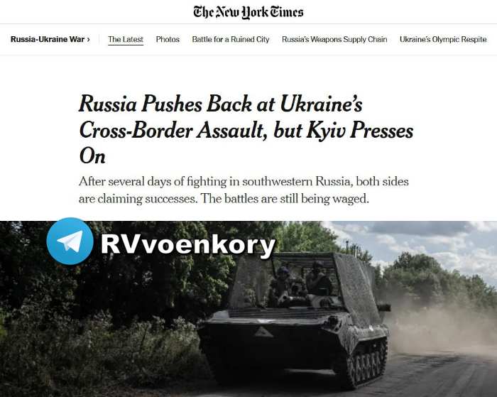Армия России остановила продвижение ВСУ на север Курской области и отражает попытки прорывов — New York Times
