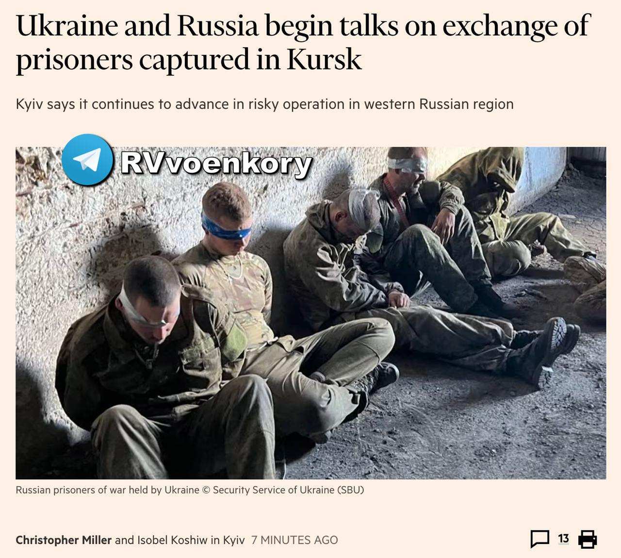 Начались переговоры с Россией об обмене пленными