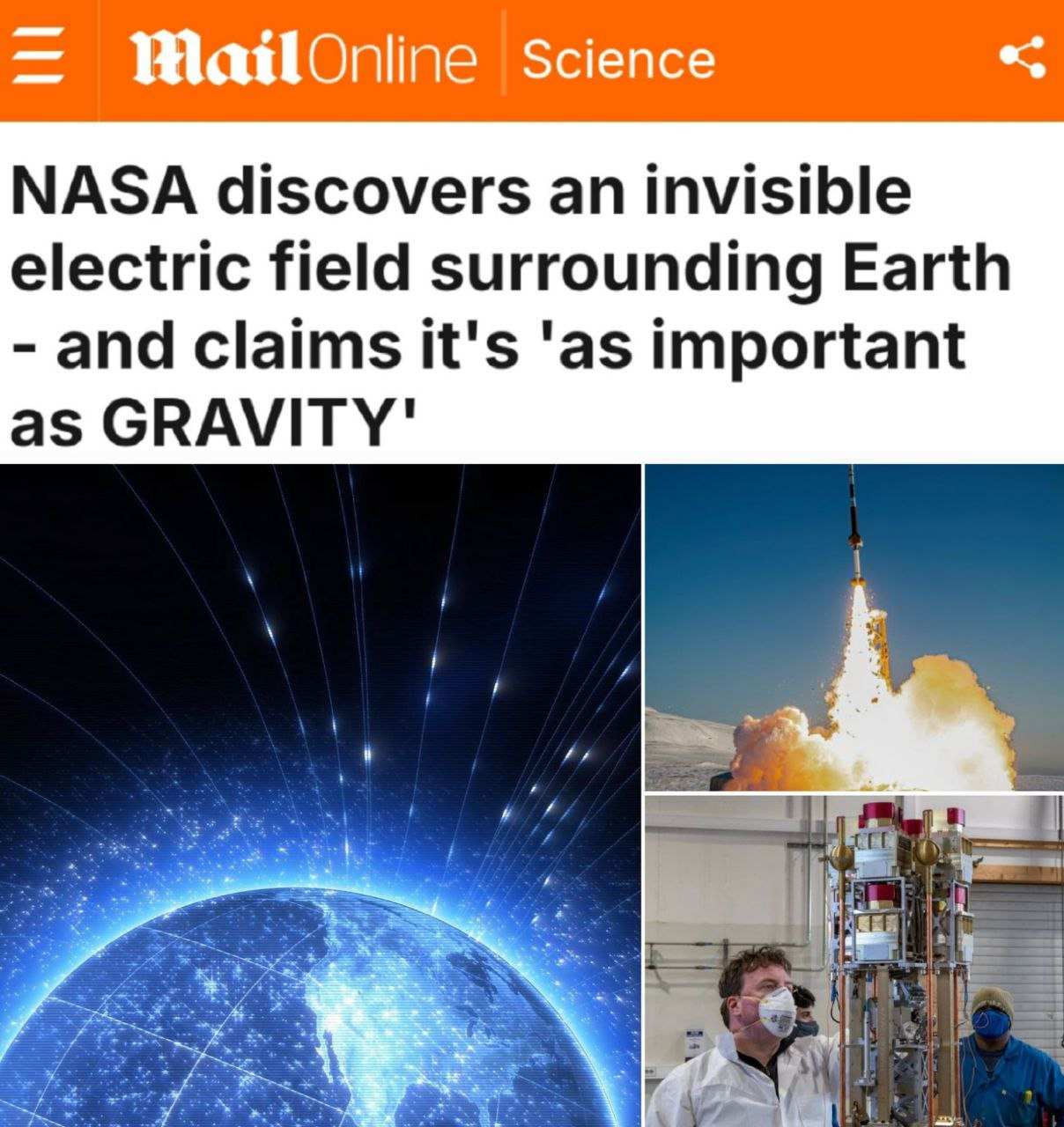 Исследователи НАСА обнаружили первые доказательства существования тонкого, почти незаметного электрического поля, окружающего планету. Это «амбиполярное электрическое поле», вероятнее всего, оно связано со сверхзвуковыми частицами, которые постоянно вылетают из полюсов Земли.