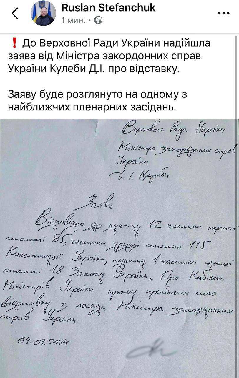 Кулеба всё: шестой за сутки украинский министр подал в отставку