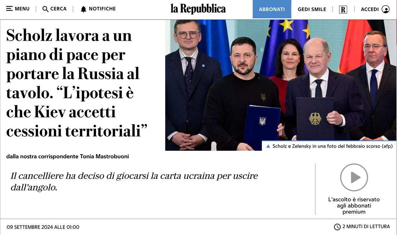 Шольц готовит мирный план, подразумевающий сохранение Россией новых территорий — La Repubblica | Русская весна