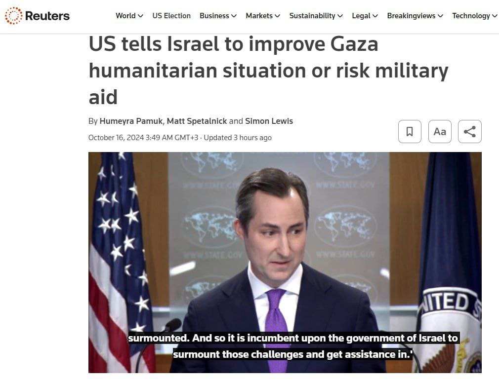 США требуют от Израиля улучшить гуманитарную ситуацию в секторе Газе в течение 30 дней, угрожая в противном случае ограничить военную помощь, сообщает Reuters.