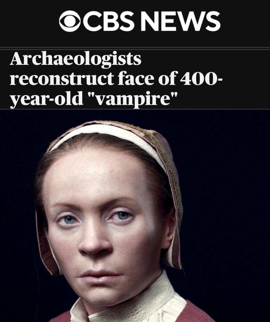 «Два года назад археологи в Польше сделали удивительное открытие — останки с серпом на шее и замком на ноге. 400-летняя женщина, найденная на кладбище в деревне Пьен, считалась вампиром, и те, кто ее хоронил поставили ей поперек горла серп, чтобы помешать восстать из мертвых.