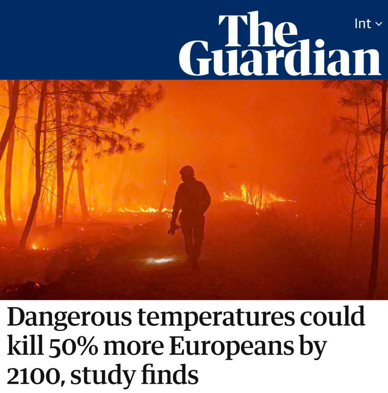 На 50% больше европейцев могут погибнуть из-за опасных температур к 2100 году, говорится в исследовании, опубликованном в журнале Nature Medicine.