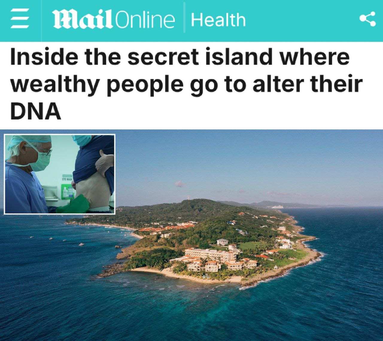 «Малоизвестный остров в Карибском море быстро становится Меккой для жаждущих вечной жизни сверхбогатых людей из-за отсутствия регулирующих экспериментальную генную терапию законов.