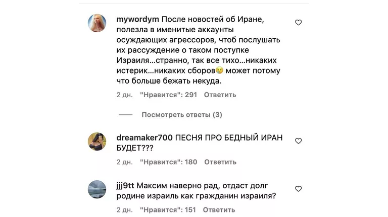 «Прошло уже больше 12 часов, но почему нет поста с осуждением Израиля, который напал на Иран?» — задал вопрос еще один.
