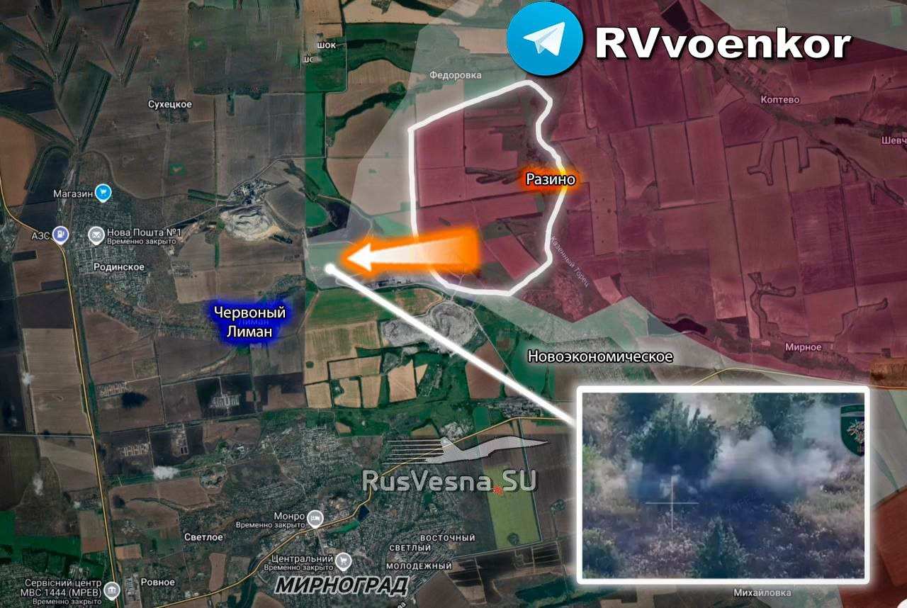 На правом фланге покровского направления российские штурмовые группы уже перемещаются к северу от Мирнограда.