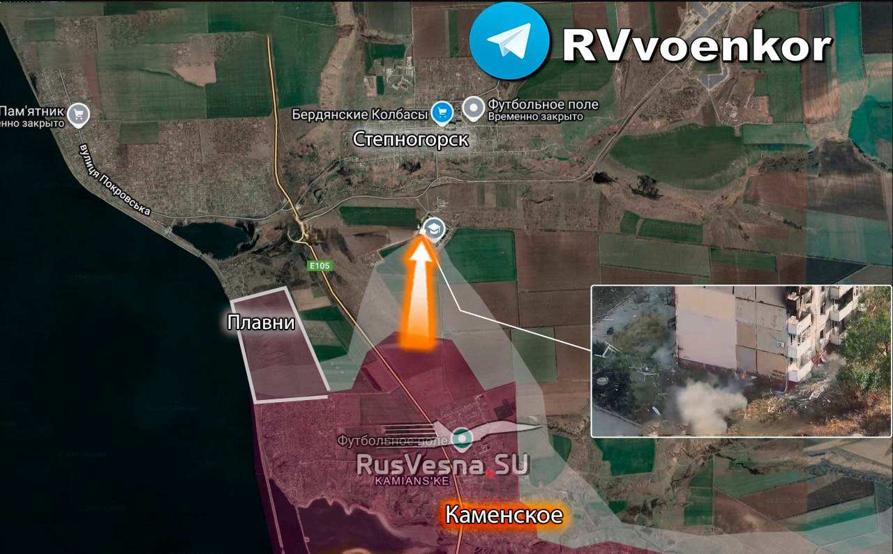 Армия России штурмует Степногорск и добивает врага в Плавнях, наступая на Запорожском фронте.