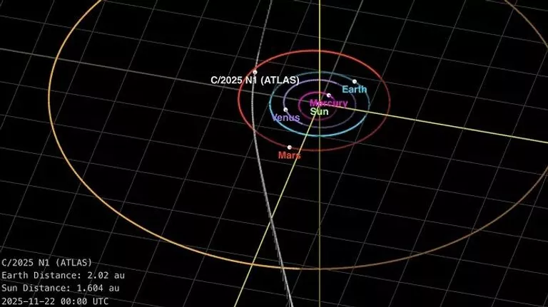 Межзвёздный объект 3I/ATLAS заметили 1 июля. Учёные позже установили, что это комета из другой звёздной системы. Её кома (облако газа и пыли вокруг ядра) — около 24 километров в диаметре. Компьютерная модель показала примерный возраст: более семи с половиной миллиардов лет — на три миллиарда старше Солнца. Возможно, это самая старая из когда-либо наблюдавшихся комет.