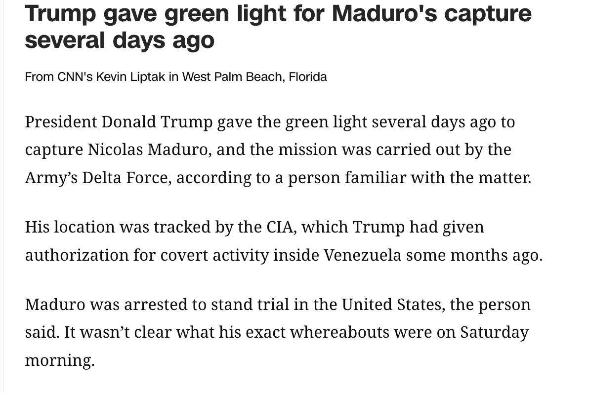Местонахождение Мадуро отслеживало ЦРУ. Трамп одобрил операцию по его захвату несколько дней назад, — CNN