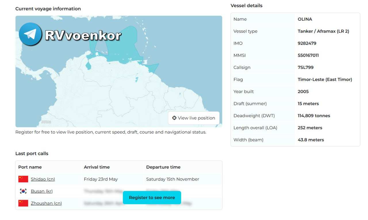 Судно было замечено у берегов Венесуэлы под флагом Восточного Тимора, хотя ранее уже находилось под санкциями за перевозку российской нефти (из этого киевские СМИ сделали фейковые новости, что танкер вёз нефть из РФ).