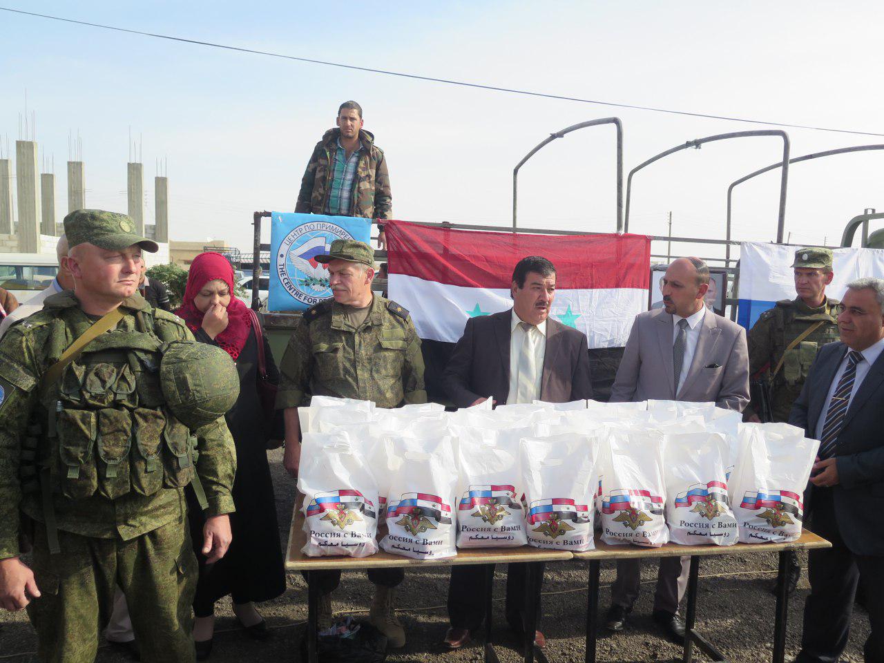 في 18 تشرين الثاني ، قام الجيش الروسي بتوزيع مساعدات إنسانية في منطقة الشقراحية، بمحافظة درعا، يبعد34 كم عن دمشق. فتم توزيع 500 سلة غذائية (السكر والأرز واللحوم المعلبة). الوزن الإجمالي 2،150 طن، و قام الطبيب بفحص 101 شخصاً، بينهم 22 طفلاً.