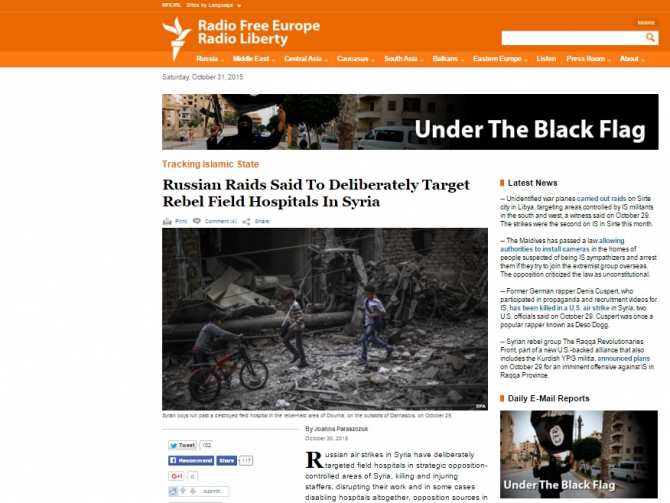 Например, Радио «Свободная Европа» в статье за авторством Джоанны Паращук сообщает о преднамеренной охоте русских за полевыми госпиталями мятежников. Источник — самый серьёзный, «директор Свободного директората здравоохранения Ясир Дарвиш».