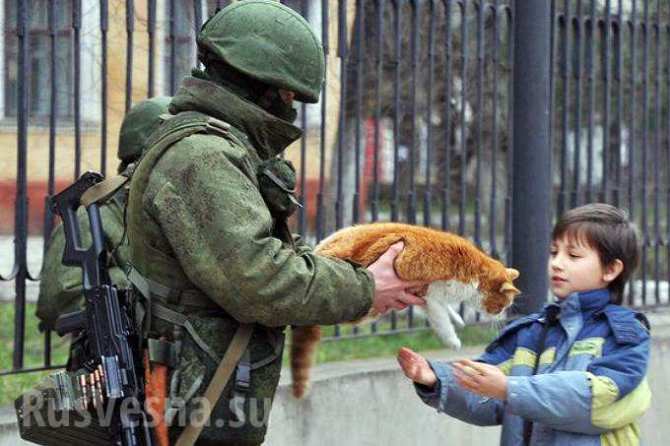 До чего ж все-таки наивные люди, а! Они начитались своих пропагандистов и, видимо, представляют себе картину следующим образом: в абсолютно проукраинский, сине-желтый, свидомый Крым вторглась орда совершенно чуждых местному населению «зеленых человечков» и завоевала этих несчастных крымчан, используя «Фейсбук» и пропаганду.