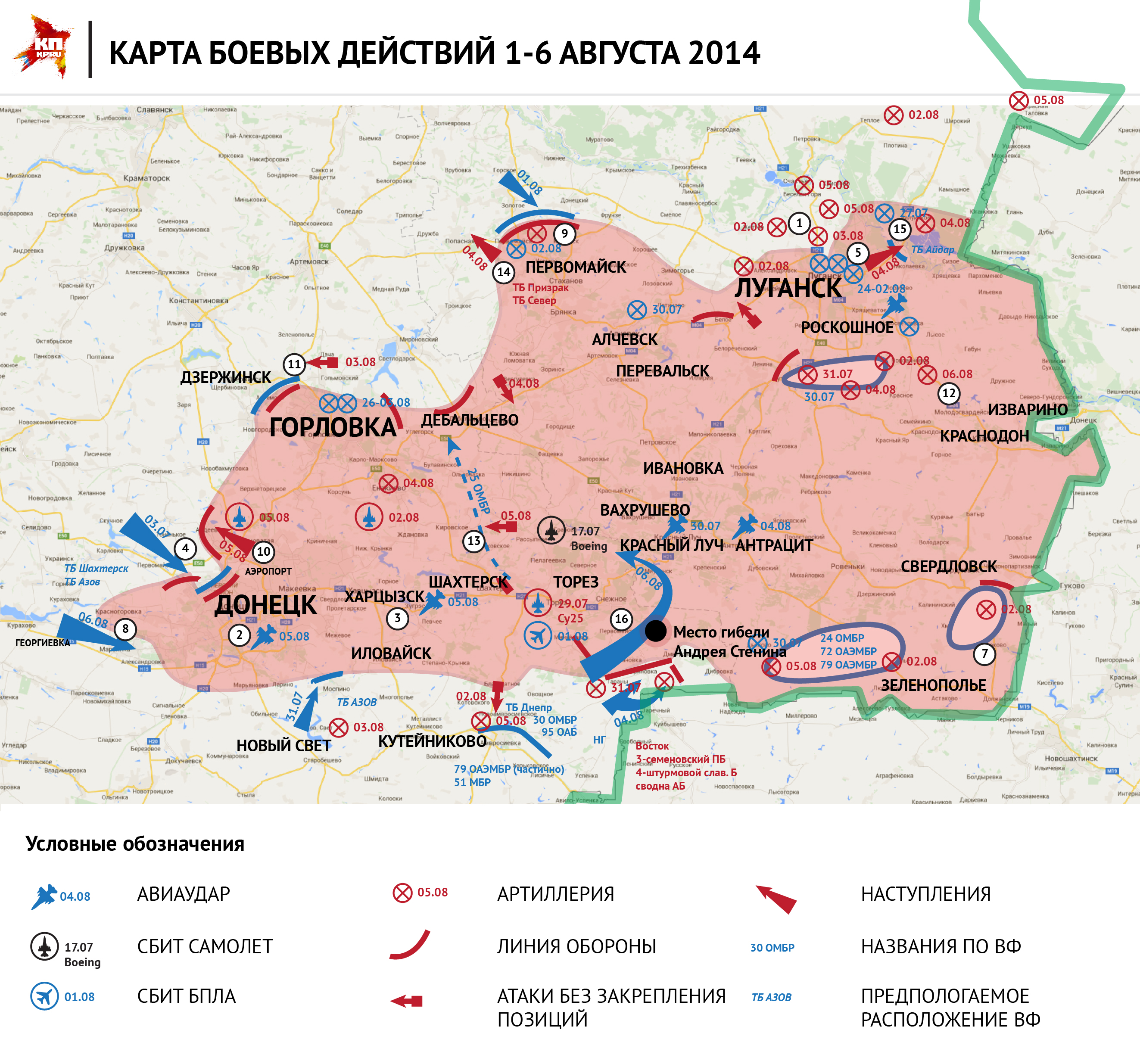 БОЕВЫЕ ДЕЙСТВИЯ В ДОНБАССЕ 1-6 АВГУСТА 2014 Г. НА КАРТЕ