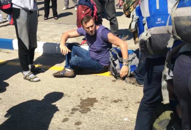 Если внимательно смотреть видео с места событий, то слегка помяли парочку его лысых миньонов, пока сам Навальный на камеру картинно (и явно переигрывая) причитал: «Что ж вы делаете? Они же дети!».
