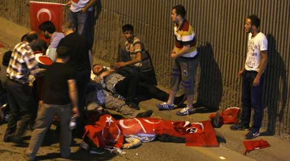 Расстреляв полицейских, преградивших им путь, мятежные солдаты и офицеры превратились просто в бандитов, против которых Эрдоган призвал выступить «всем народом»: он назвал их предателями, палачами, убийцами, и заявил, что никто из них не уйдет от возмездия.