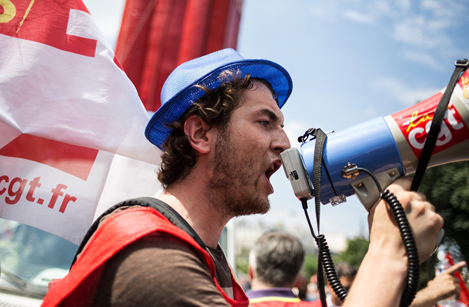 © РИА Новости. Ирина Калашникова Акция протеста профсоюзов в Париже